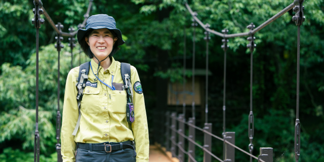 また、登山道の設置やビジターセンターの運営といった施設の整備・管理、清掃活動、巡視など、多くの人に自然のすばらしさを伝え、楽しんでもらえるよう施策を進めています。現在、私が担当しているのは、秩父多摩甲斐国立公園です。1都3県にまたがり、全国に32ある国立公園の中でもその大きさはトップクラス。壮大な自然の中に身をおき、その息づかいを五感で感じながら、仕事に取り組める。この環境は、特別だと思いますね。