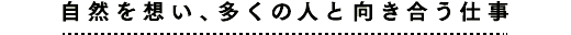 たとえば、自然ふれあい活動に参加した方が、「こんなきれいな場所があったんだ」と喜んでくださる。自分が許認可に携わった建物が、自然になじむ形で設置されているのを確認できる。こうして自分の仕事の成果を直接実感できるのは何よりのやりがいです。