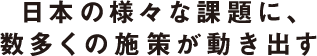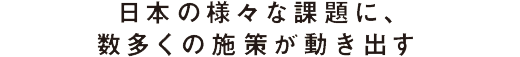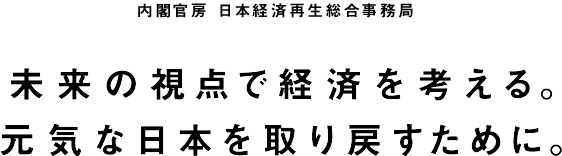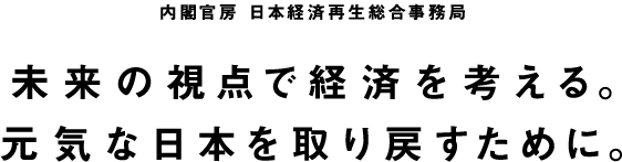 長引くデフレからの脱却と、強い日本経済を取り戻すために、2012年12月『日本経済再生本部』が発足した。内閣総理大臣を本部長とし、すべての国務大臣によって構成された組織で、いわば日本の経済政策の司令塔。第二次安倍内閣が掲げる経済財政政策『三本の矢』の第一・第二の施策である「大胆な金融政策」「機動的な財政政策」に次ぐ第三の矢、「成長戦略」を実現するため、各省庁が連携し様々な施策が進行中。一人ひとりの想いがこの国の未来をつくっている。