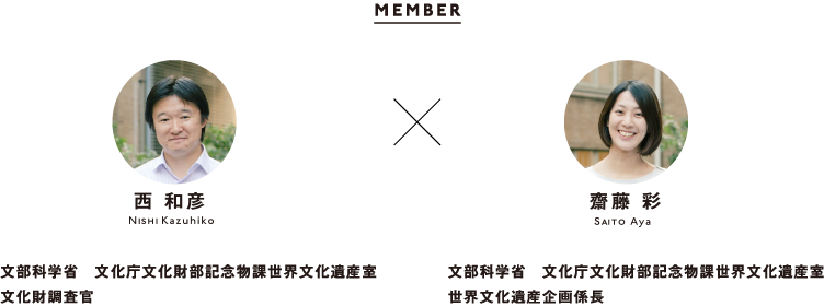 文部科学省 文化庁文化財部記念物課世界文化遺産室 世界文化遺産企画係長 2003年、文部科学省へ入省。学校施設の耐震化や、家庭教育支援など、様々な部署で経験を積んだ後、文化庁の世界文化遺産室に。その後、パリにある世界遺産委員会の事務局であるユネスコ世界遺産センターへの派遣を経て、2013年に現場での経験を活かすべく再び世界文化遺産室へ。日本の文化遺産を守りたい、と世界遺産登録の事務方として支えている。肩書は取材当時。2015年10月より、文部科学省 大臣官房国際課国際機関係長へ異動。